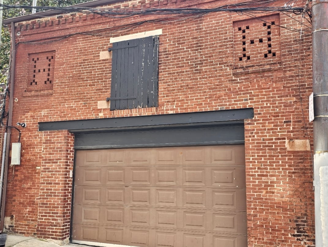 2. Untempered.  Unlike interior spaces, which even in historic times had fireplaces or boilers to keep them warm in the winter, the alley storage and stable buildings were not tempered or heated to the same degree.  In effect, because of the lack of heating in the winter, these buildings would have a more extreme temperature fluctuation than the main buildings, the houses that people lived in. High- temperature fluctuations cause a higher degree of micro-expansion and micro-contraction of the bricks and mortar in historic buildings, leading to accelerated deterioration. Accessory buildings like alley structures in DC also often lack the same insulation and protective measures as primary residences, making them more susceptible to these thermal stresses. Over time, this repeated thermal cycling can cause cracking, spalling, and mortar deterioration and erosion, resulting in a higher degree of deterioration in untempered brick buildings compared to their more insulated counterparts.historic hay doors