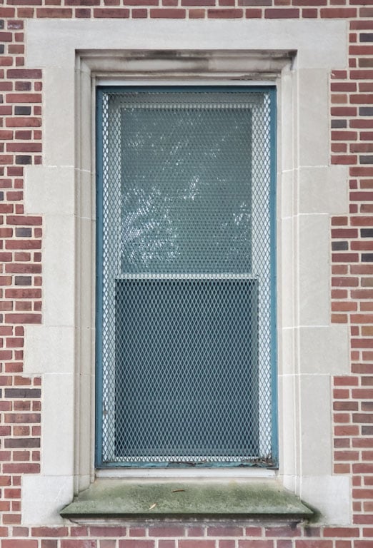 The sandstone window sill shown in the pictures below is an example of the intentional slope of a sill, intended to migrate rain water away from the window. The window sill protrudes 2.25″ away from the brick facade above and below. This projection also keeps water from running in concentration down the face of the brick wall.